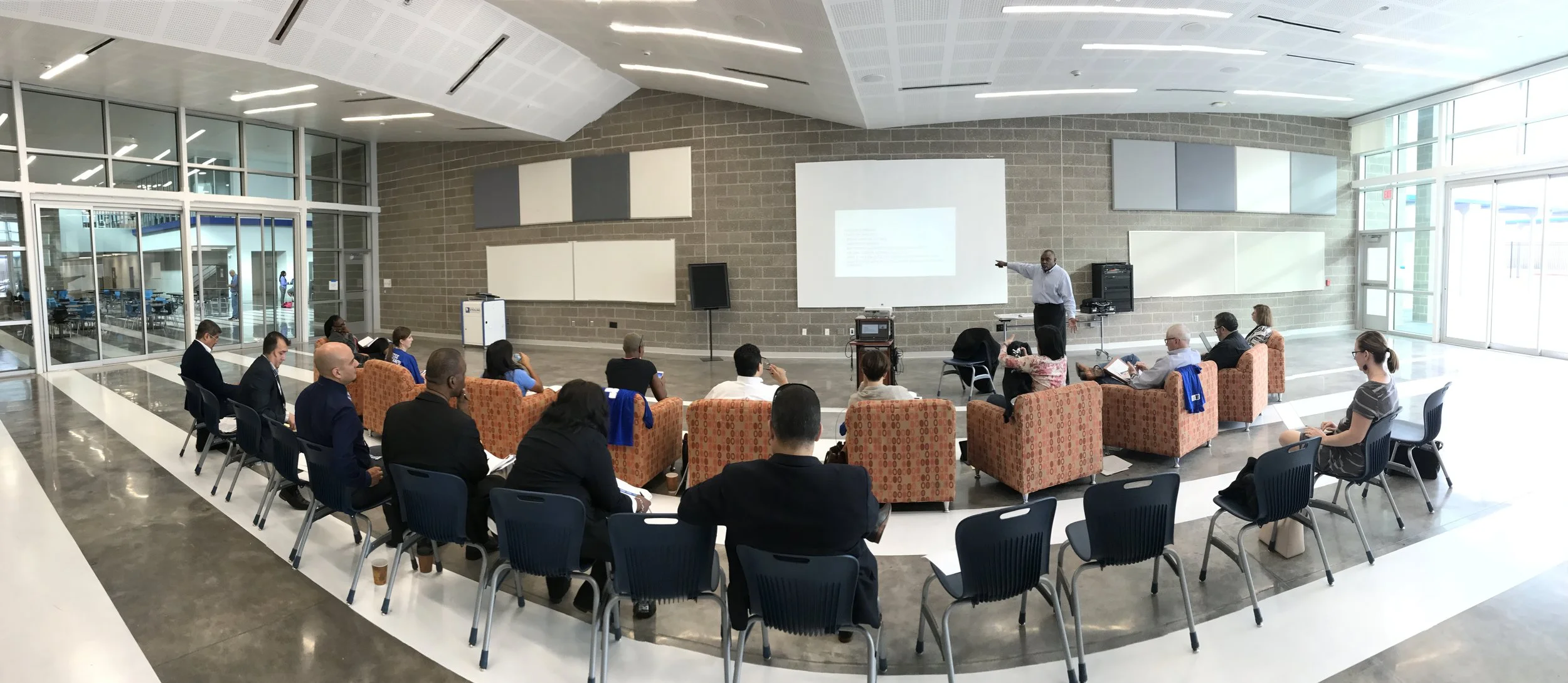 He began the workshop by presenting the primary problems he identified at Kashmere and Worthing high schools following a short, one-day visit to each school. His top recommendation for these schools was significant professional development, a service his company just happens to provide.