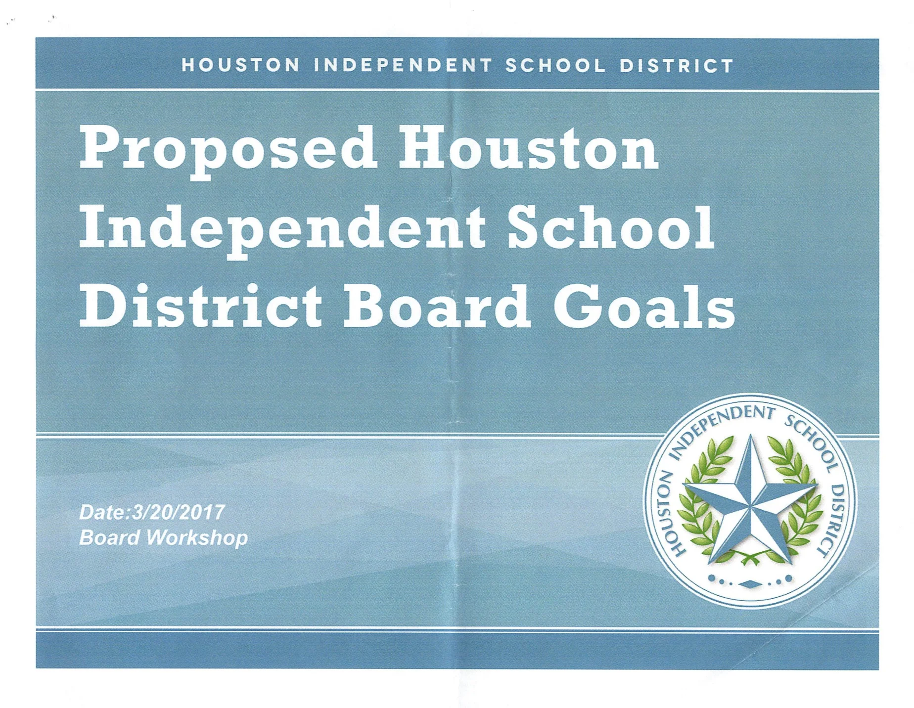 The HISD board is set to approve its “new” goals for the district at its next board meeting on April 9th. The board’s process began in January when the board met for a few hours one Saturday morning with a (seemingly questionable) consultant who to develop these metrics and goals as prescribed by the Texas Education Agency’s best practices on school governance on which the board was trained in December.